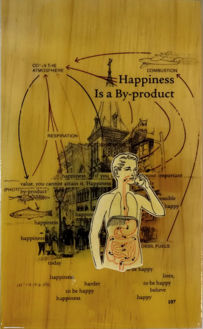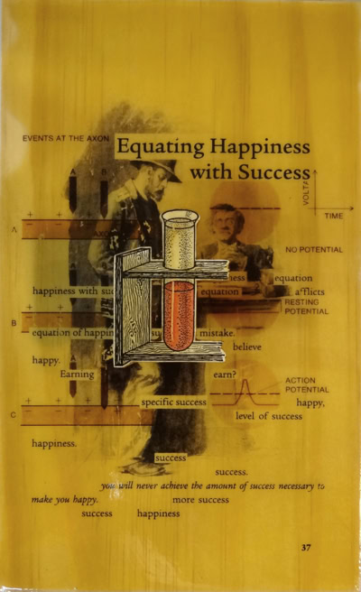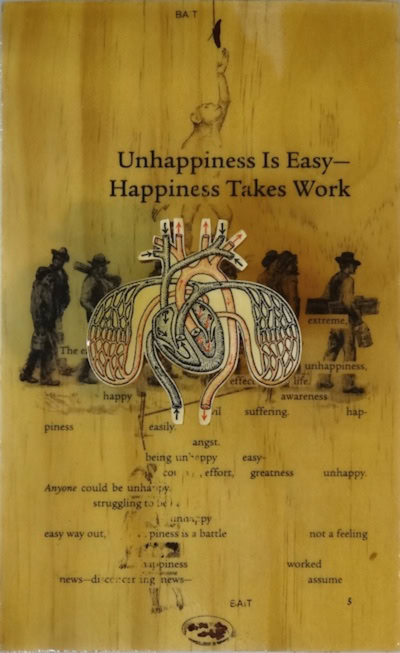 Three sources were combined for this series of ten pieces. Juxtaposing harsh realty with self-help hope.