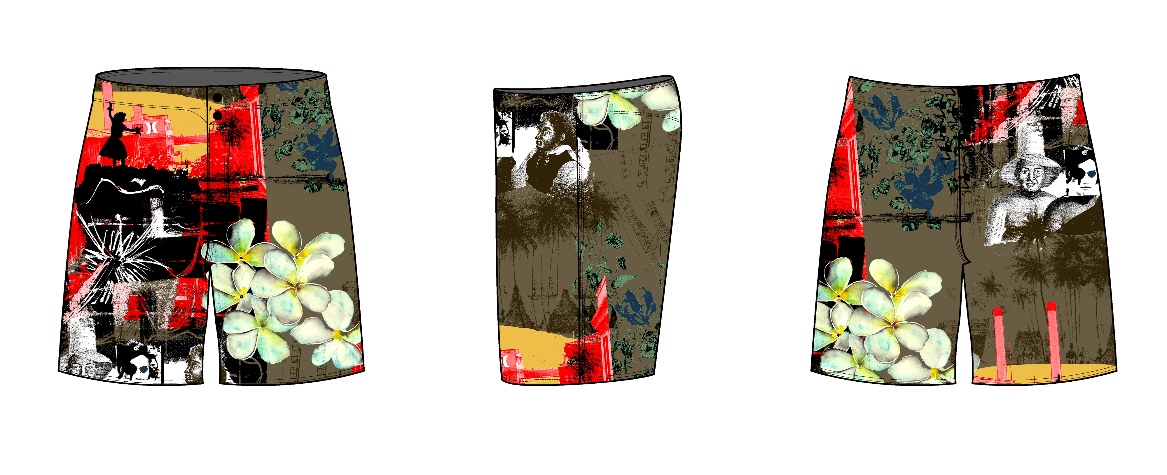 Create tech-packs colorways and repeating designs for board shorts, shirts & accessories